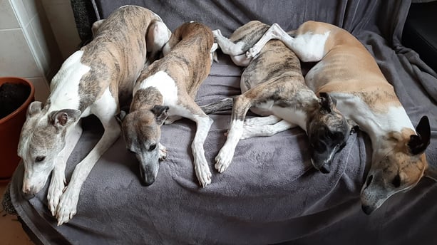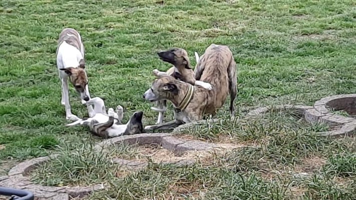 Es ist für mich immer wieder toll, wenn die "Kinder" zu Besuch zu uns kommen oder auch bei uns Urlaub machen! Manche von ihnen sehe ich öfter, manche seltener, aber wenn sie da sind freuen sich alle! Amy (Artemis von Boitin) und Daphne (Daphne von Boitin) machen gerade Urlaub bei uns und heute kam noch Heike mit Bea (Bona Dea von Boitin) und Ella (Epona von Boitin). So hatten wir heute von Vivis jedem Wurf ein Mädchen dabei. Drei Halbschwestern und Mutti 🥰❤