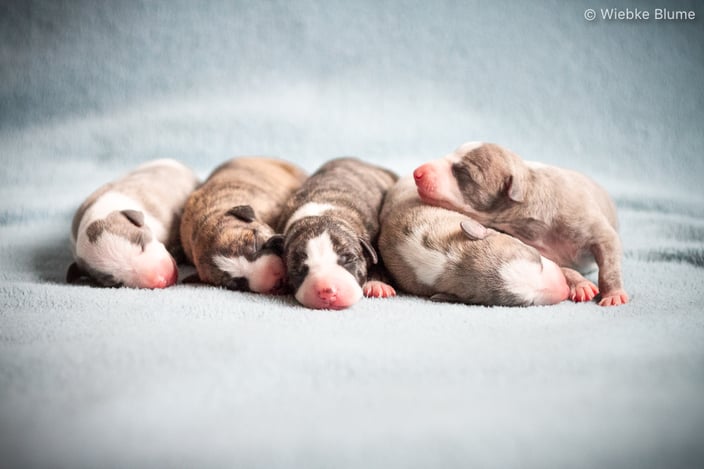 Vorgestern ist unser J-Wurf auf die Welt gekommen! Wir erfreuen uns über fünf gesunde und kräftige Welpen! Auch Mama Daisy geht es gut! Die Geburt war leider ziemlich lang und schwer. Dank einem tollem Tierarzt sind wir haarscharf um einen Kaiserschnitt herumgekommen. Der Welpe Juru Jin hat die Strapazen leider nicht überlebt.
