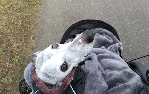 Bis wir wieder lange Spaziergänge machen können wird noch dauern aber zum Glück haben wir noch Tilus sein Wagen. Die kleine Maus ist so Tapfer und macht ganz brav alles mit