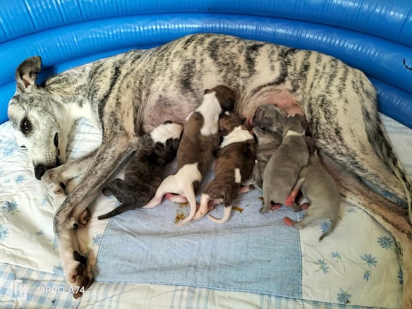 Am Freitag Abend hat Daisy unser O-Wurf auf die Welt gebracht. Es war eine Geburt wie aus dem Lehrbuch. Sie hat uns 3 Rüden und 3 Hündinnen geschenkt.